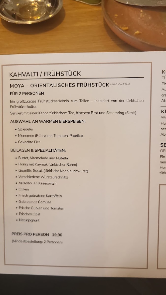 Café Moya - Turkish Breakfast and more is a delightful spot located at Mühlenstraße 42, Leer, perfect for those seeking an authentic Turkish breakfast experience. The menu boasts an array of fresh, delicious dishes that highlight traditional flavors. Diners can indulge in an impressive selection of breakfasts that include everything from warm pita and olives to rich, creamy cheeses and fresh vegetables.
